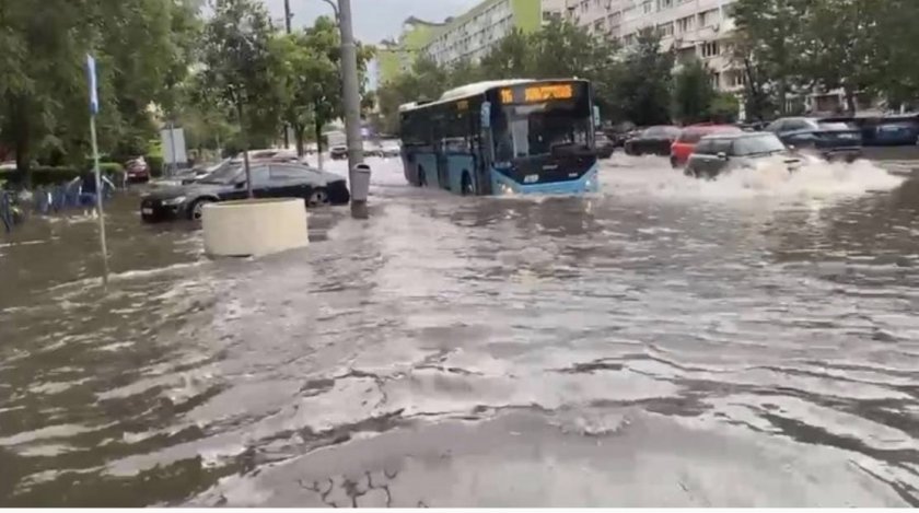 Дъждът не спира, като има наводнени улици и булеварди, както и закъсали автомобили.
