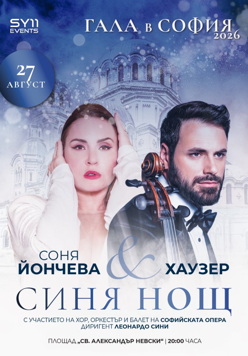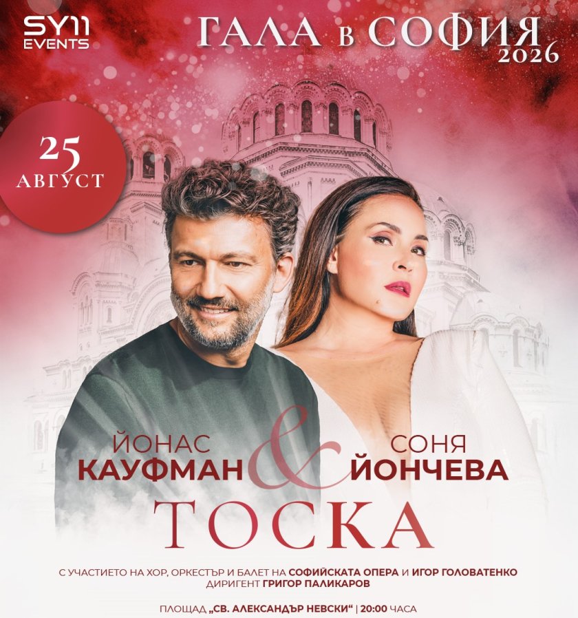 Соня Йончева блести в „Тоска” с Йонас Кауфман и „Синя нощ” с Хаузер в две незабравими вечери от „Гала в София” 2026. На 25 и 27 август в духовното сърце на българската столица ще се проведе станалата вече емблематична и традиционна „Гала в София” – този път в най-мащабния и най-емоционалния си фестивален формат досега, споделят от продуцентската компания на Соня Йончева - SY11 Events.