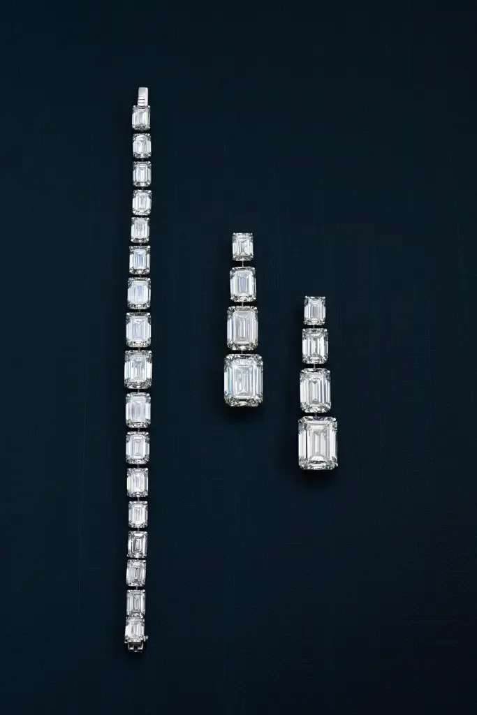 Колието й, инкрустирано с впечатляващ 20-каратов централен диамант, тежи общо 185 карата. Освен него Кери блестеше с гривна от 55 карата и чифт висящи диамантени обеци от 66 карата.