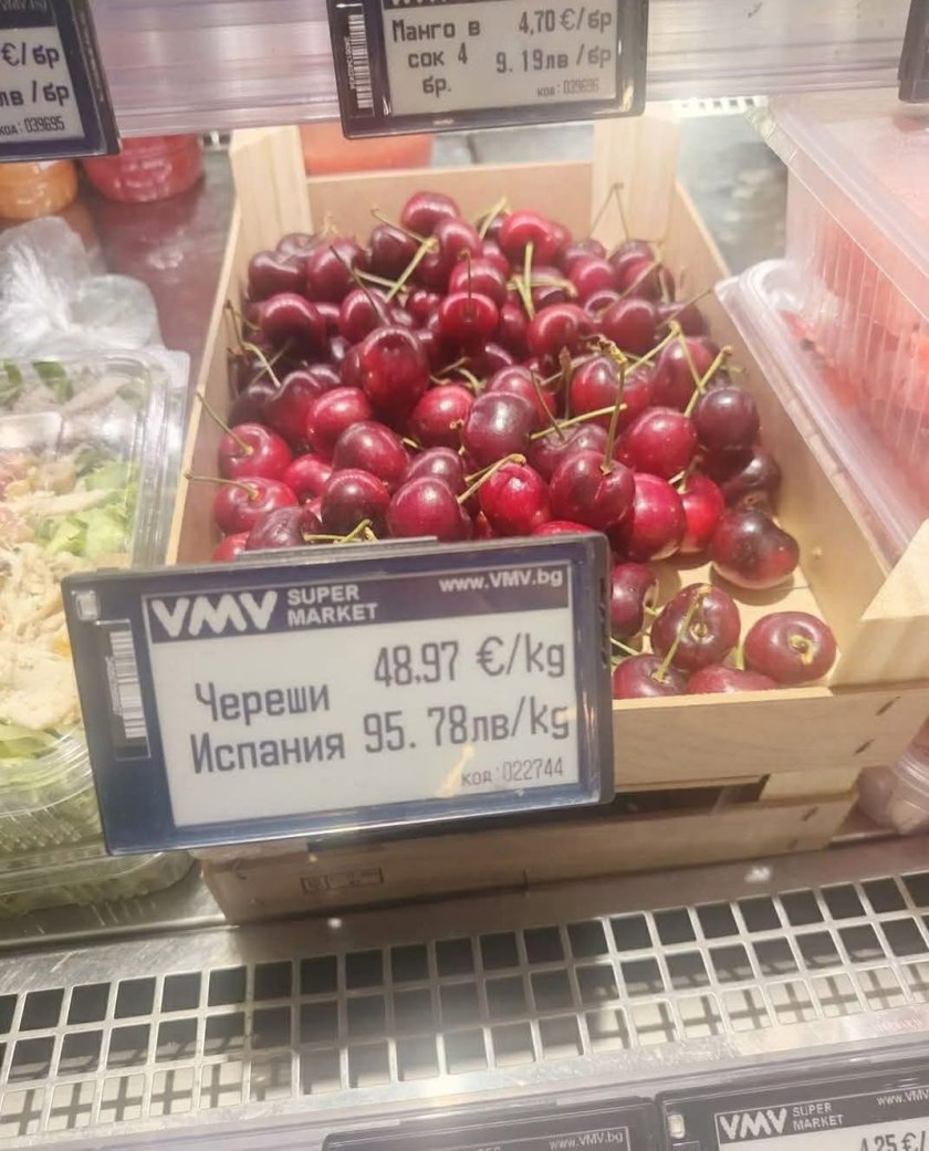 Българин, който живее в Испания, обяснява: „Вече има местни череши по 25 евро/килото. Иначе извън сезон са по 3 евро.“