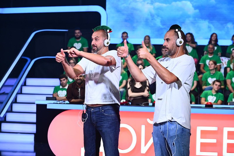 В последния епизод на „Аз обичам България“, една от най-смешните игри - „Щурец в ухото“, отново донесе буря от емоции и заразителен смях в студиото. Този път дори водещата Алекс не успя да сдържи сълзите си от смях! В отборът на Филип Буков днес играха волейболните звезди - близнаците Георги и Валентин Братоеви, а срещу тях имаше цяло актьорското трио – капитан Стоян Дойчев, Боряна Братоева и Петър Антонов.