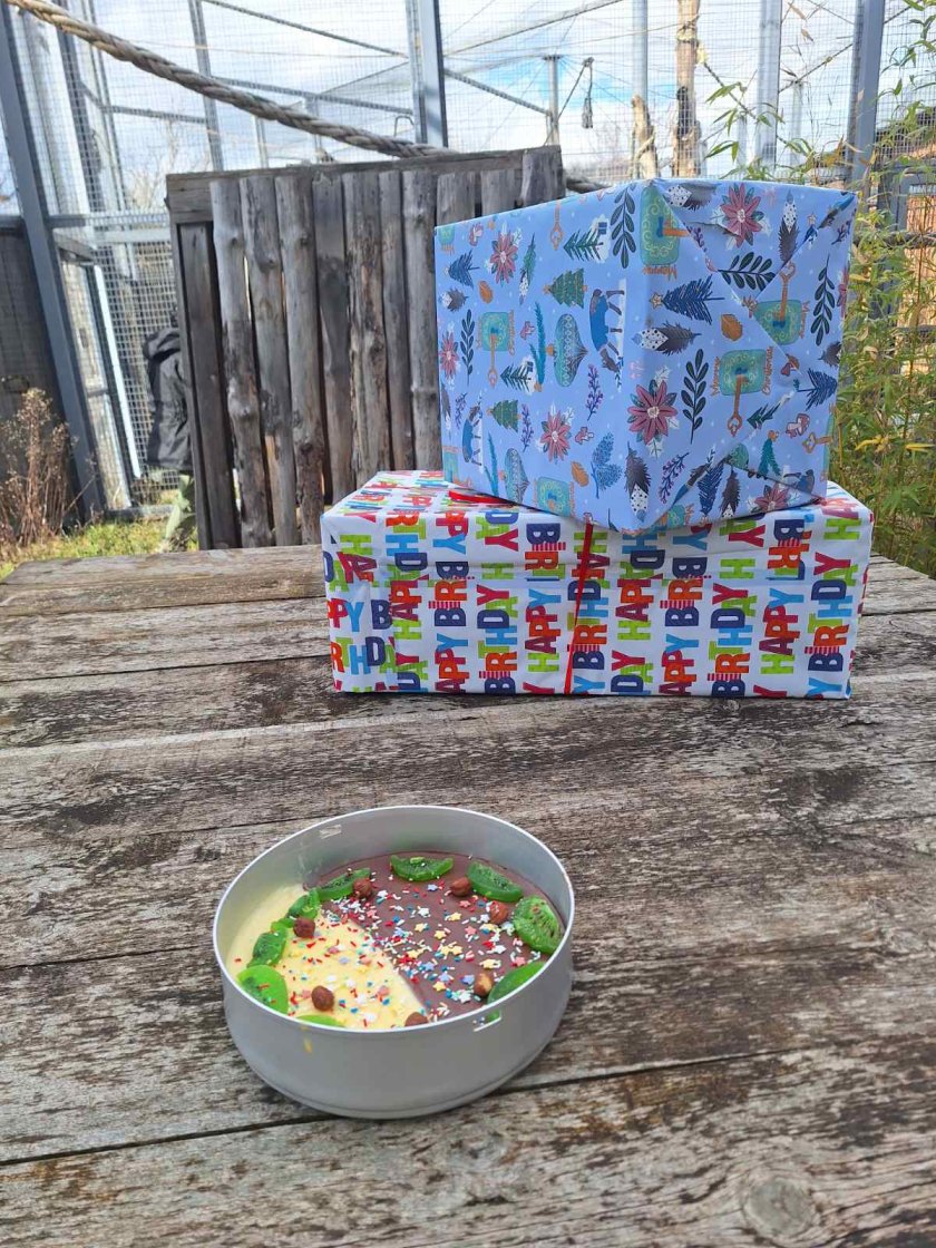 От зоопарка специално благодариха на дългогодишните осиновители на маймунката - "Аладин Фуудс" (Aladin Foods), които както обикновено му подариха чудесни подаръци - интерактивни играчки и здравословни лакомства. Имаше и полезна и вкусна торта, направена с много обич от неговите гледачи, казаха от зоопарка.
