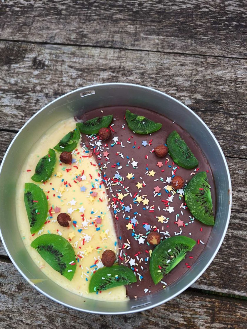Алф доста чевръсто разопакова кутиите с подаръци, които бяха обвити с цветна опаковъчна хартия с надписи "Честит рожден ден". Маймунчето видимо се зарадва на лакомствата - банани и торта от банани, украсена с киви и други полезни за Алф плодове.