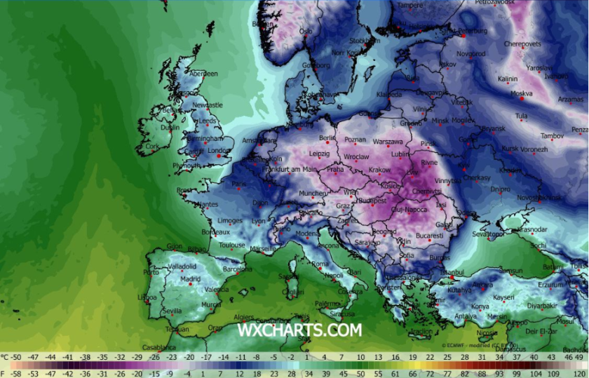 след 12–15 януари над голяма част от континента ще се установят значително по-ниски от обичайните температури, като студът ще обхване както Централна и Източна Европа, така и Балканския полуостров.