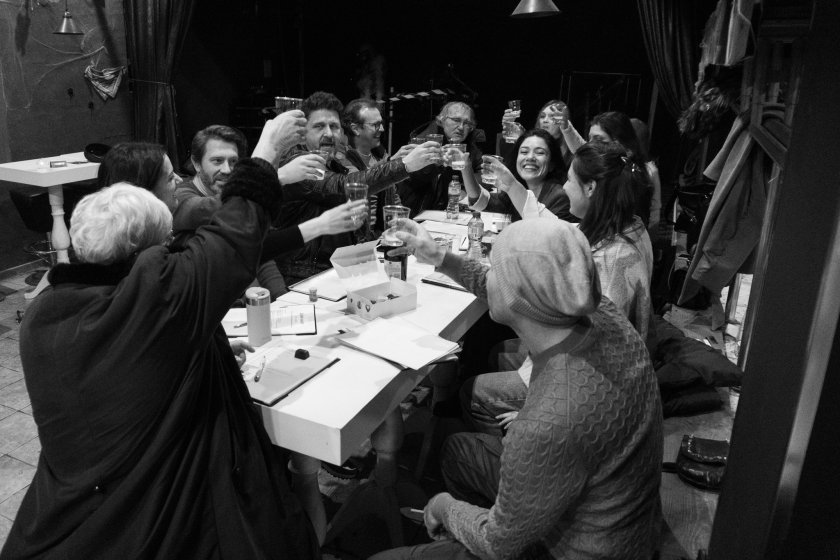Екипът на "Дами канят" вдига наздравица на първата репетиция