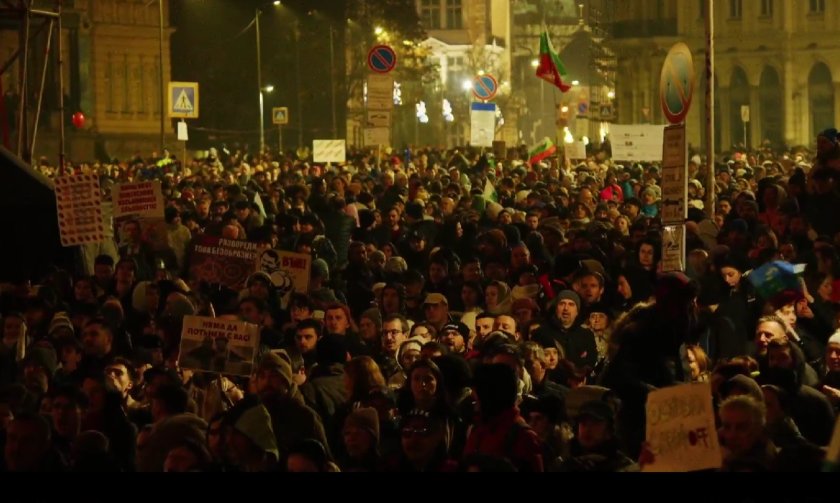 Протестът в Триъгълника на властта закри Асен Василев преди минути, като призова протестиращите никой да не се отпуска и твърд курс към избори. Лидерът на ПП накара всички присъстващи да пуснат светлините на телефоните си, докато пеят химна на България.