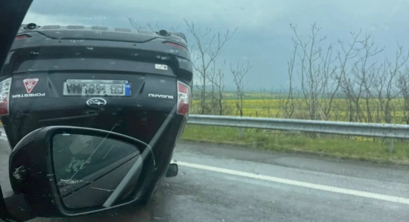 На публикуваните снимки се вижда обърнат по таван автомобил. Според автора им пътният инцидент е станал на 342-ия километър в посока Бургас.