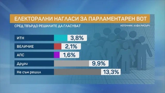 „Алфа Рисърч“ отчита, че БСП и ИТН са сред формациите, които търпят най-сериозни електорални щети след събитията от последните седмици. И двете са в зоната около 4-процентната бариера, което поставя под въпрос парламентарното им представителство при избори „днес“.