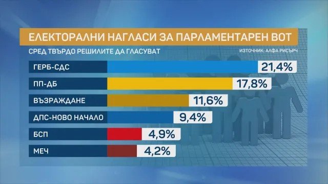 ПП-ДБ отчита ръст и достига 17,8%, което води до съществено сближаване между първите две формации и индикация за оспорвана надпревара.