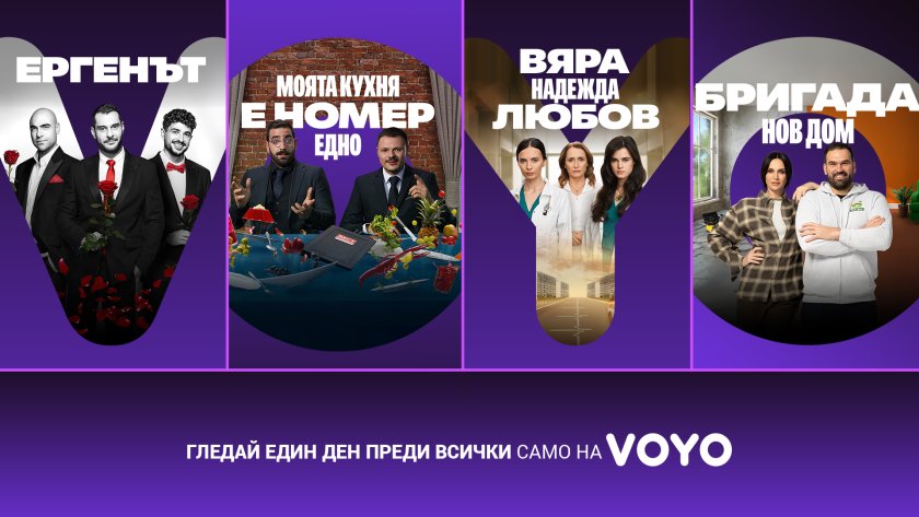 Абонатите на VOYO ще имат преимуществото да станат първи свидетели на най-вълнуващите моменти от „Ергенът“, но също така и новото кулинарно състезание „Моята кухня е номер едно“, най-новия български сериал „ВЯРА, НАДЕЖДА, ЛЮБОВ“, социалният феномен „Бригада Нов дом“, както и много други предавания.