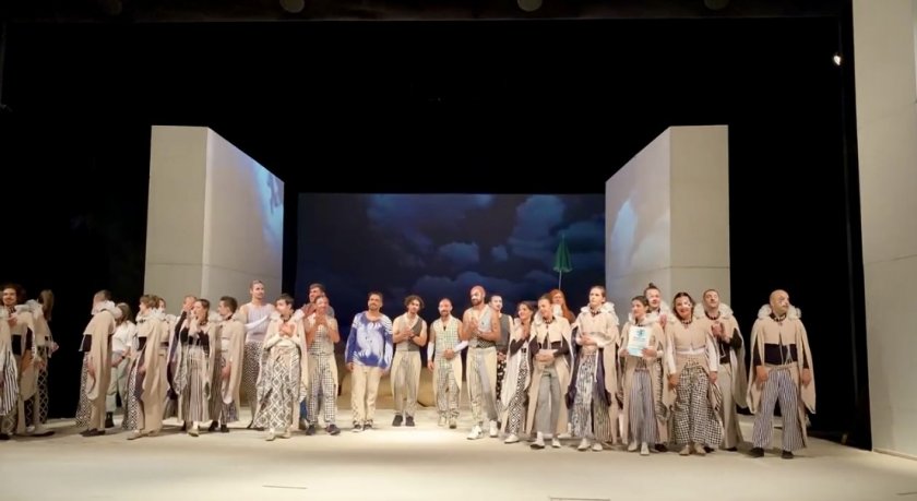 Впечатляващи са костюмите на актьорите и музикантите, облечени в бяло-синьо и бяло-черно, а техният съвместен танц пресъздава морските вълни. В символиката на морето откриваме духовната дълбочина и безкрайността и най-вече като че ли свободата и свободния творец, който се бунтува, но и който съзидава и се стреми да остави нещо ярко и смислено на тази Земя.