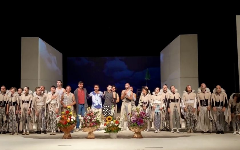 Екипът на мюзикъла "НевиДимо дете" приема аплодисмените на развълнуваните зрители в Стара Загора през септември. Снимка: Марина Чертова