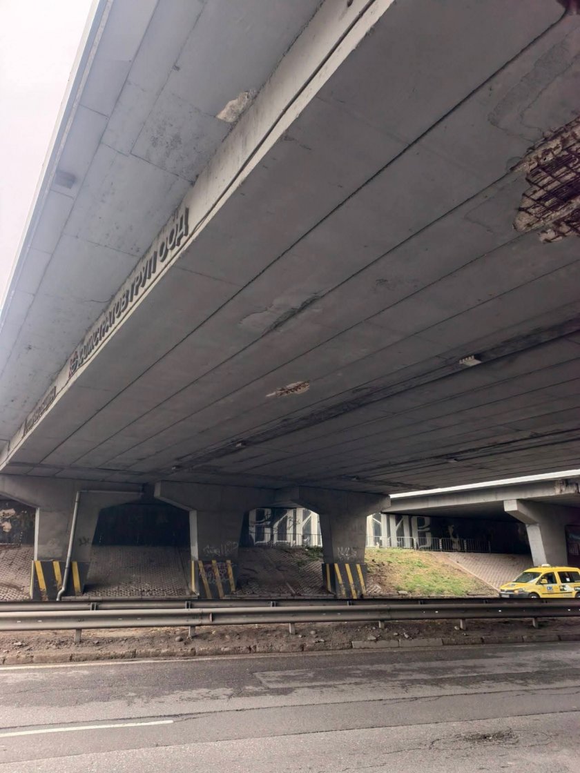 Мои приятели са пътували по Брюксел към СОП и под моста на Цариградско, пада парче бетон от конструкцията върху колата им. Виждат се щетите.