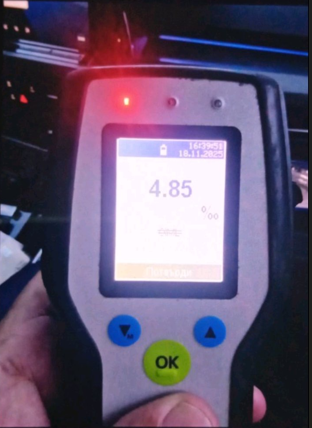 Пробата с дрегер е показала 4,85 промила в издишания въздух, съобщават от полицията.