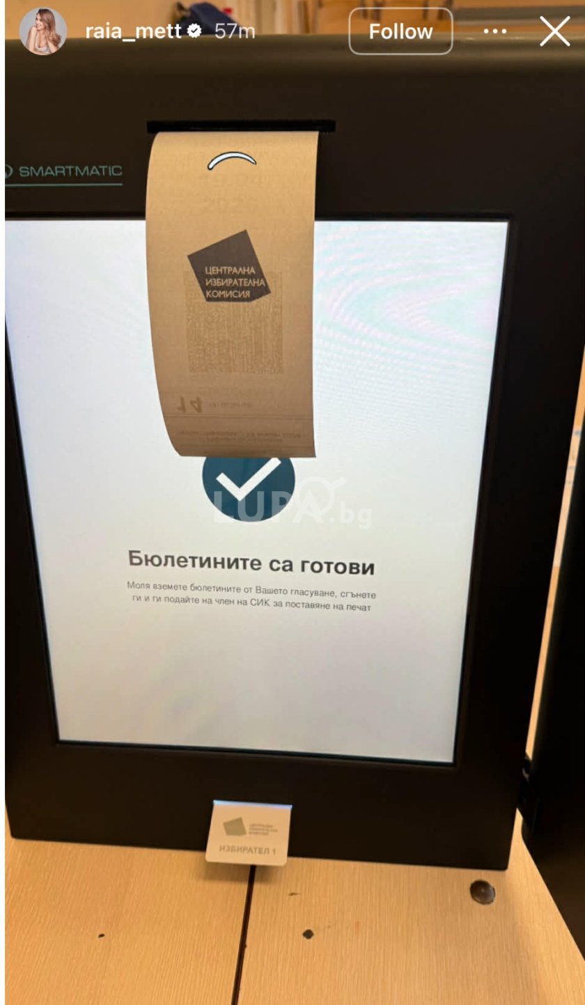Ралица Методиева, бившата съпруга на Николай Методиев – Пилето, демонстрира публично своя вот на проведените вчера избори. Тя снима бюлетината си, от която става ясно, че е подкрепила партия „Величие“ с номер 14, видя Lupa.bg.