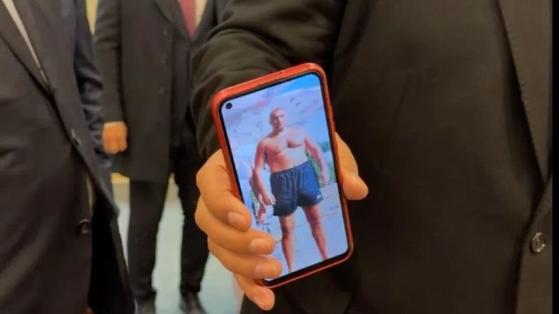 "Я виж каква снимка имам аз от морето. Като тръгнех по плажа целия плаж вървеше по мен. И сега..., но не чак толкова. Тая снимка трябва да сложиме на плаката. Глей какви гащи съм обул", коментира с добродушен смях лидерът на ГЕРБ.