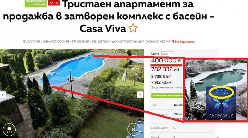 Телевизионната водеща и писателка Венета Райкова отново предлага за продажба апартамента си в София. Имотът, който преди години не успя да намери купувач, сега е пуснат отново на пазара – но тази визия е придружена с рязко повишена цена, отразяваща пазарните промени и инвестициите, направени в жилището.