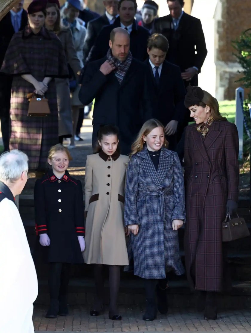 Чарлз и кралица Камила, заедно с принца и принцесата на Уелс, Уилям и Кейт, и техните деца, принцовете Джордж и Луи и принцеса Шарлот, както и по-далечни роднини, се отправиха пеша към църквата "Св. Мария Магдалена" в частното имение на краля в Сандрингъм.