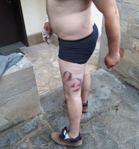 Трудно стъпва на крака си. Всички момчета са бити и унижавани и след съставяне на актове са освободени днес около 11 часа. Публикувам снимки и видео клип, от който става ясно, че момчетата с нищо не са предизвикали подобно поведение на полицейските служители, точно обратно, държали са се изключително уважително и са разговаряли с тях учтиво и на Вие", е написал в поста си Стоян Иванов.