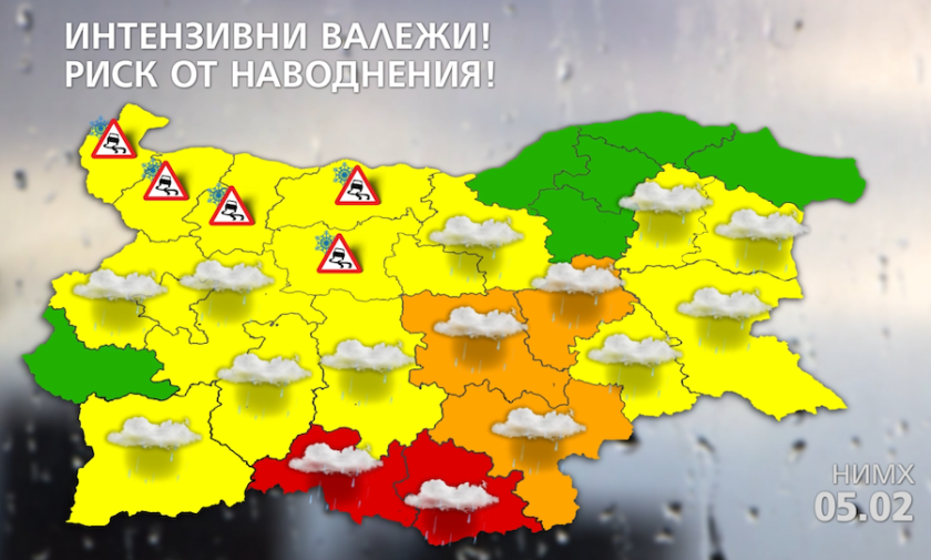 ♦ Жълт код заради обилни валежи ще бъде в сила за областите Благоевград, Пазарджик, Пловдив, Ямбол, Бургас, Шумен и Варна.