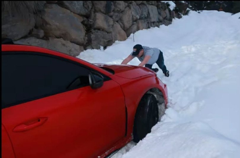 Именно там се намират някои от най-луксозните ски курорти в Европа, където често могат да бъдат засечени милионери, знаменитости и наследници на влиятелни фамилии. Точно по тези пътища, покрити с дебели снежни преспи, младата Славкова и новият ѝ избраник обикаляха с нает спортен автомобил – яркочервено порше, което по всичко личи, че не се е справя особено добре в дълбоките преспи. Идилията им е нарушена от малък, но доста зрелищен инцидент. В един момент колата затъва в дълбока пряспа на планински път. Налага се младият кавалер на Катерина да изскочи навън и да започне да бута мощното возило, докато гумите безпомощно се въртят в снега. Самата Славкова не пропусна момента и засне цялата сцена с телефона си. Снимката бързо предизвика буря от коментари в социалните мрежи.