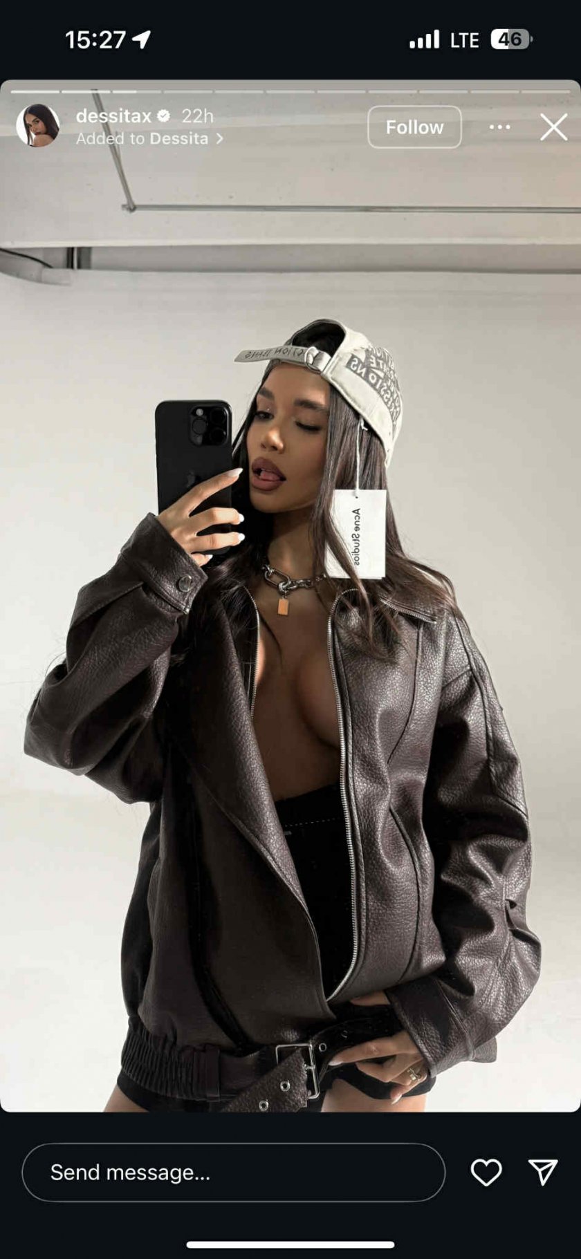 Десита сподели кадър, на който е без сутиен и по разкопчано яке, което едва прикрива силиконовите ѝ бомби. Погледът ѝ е предизвикателен, а феновете – в екстаз.