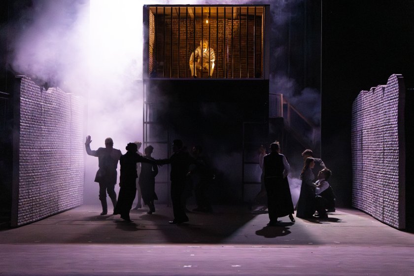 Сценографията и костюмите в спектакъла са дело на Давид Илчев. Той споделя, че визуалната концепция е подчинена на образа на затвора, през чиято перспектива се развива цялото сценично повествование. Пространството функционира като символична рамка на историята и вътрешното състояние на героите.