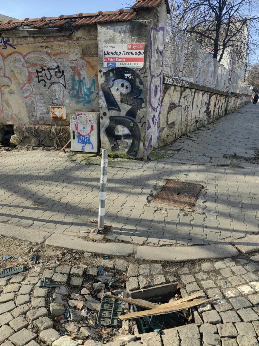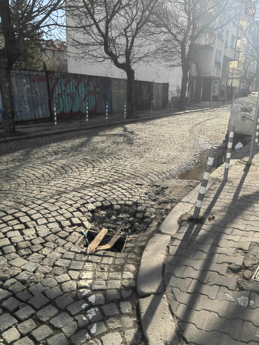 От близо месец е проблемът, който стана и здравословен, и технически... Вече има няколко човека, които са падали в нея и то със сериозни охлузвания дори по-тежки травми, както и автомобили, чиито гуми и колела са пропадали в "пропастта".