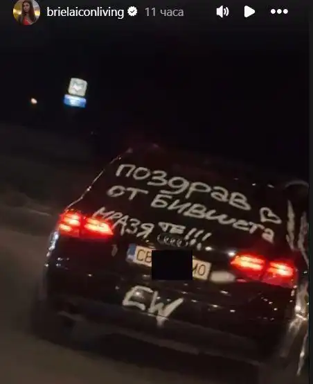 Вместо да запази мълчание и дистанция, Габи избра демонстративен гняв – публикува клип в социалните мрежи с луксозно Ауди, надраскано със спрей и послания, които не оставят място за съмнение.