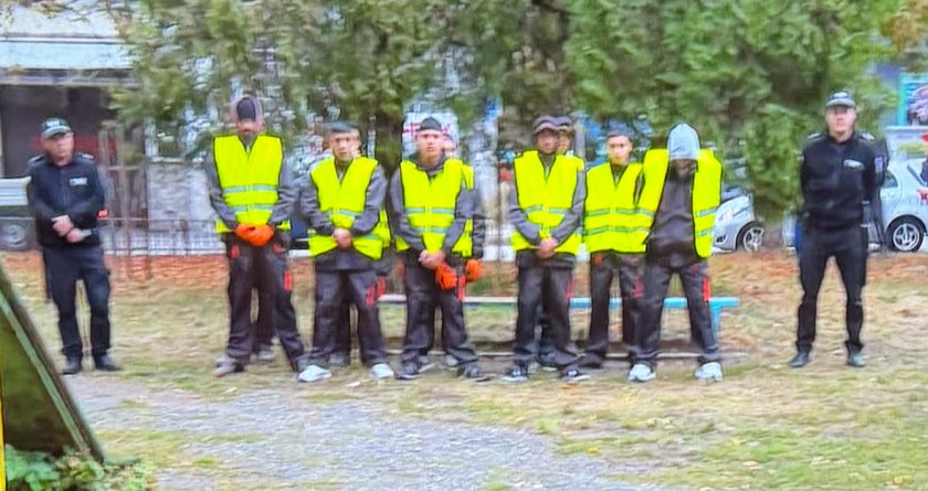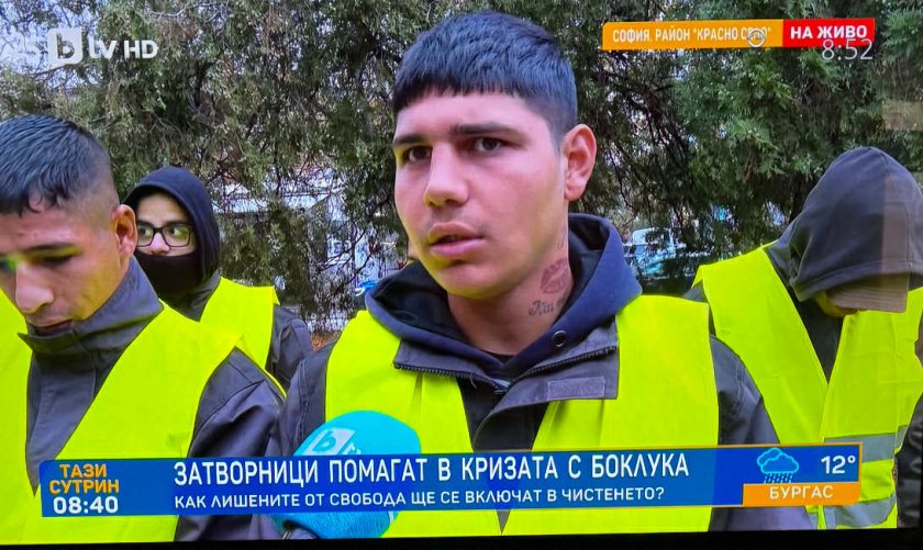 В репортаж на Би Ти Ви бяха показани десет лишени от свобода, които ще трябва да полагат обществено полезен труд. Затворниците са охранявани от двама полицаи. „Тук съм по нареждане, да помогна за боклука. С условна присъда съм“, разказа един от пандизчиите.