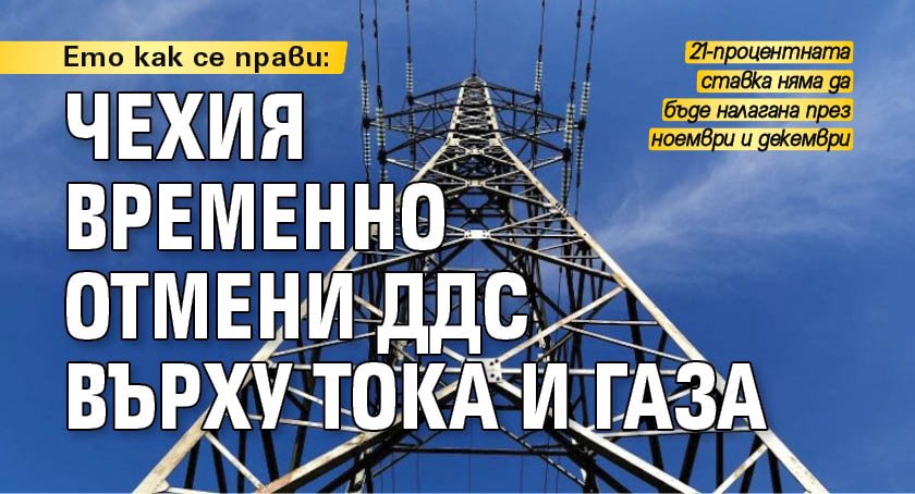 Правителството на Чехия отмени временно данък добавена стойност (ДДС) върху електричеството и газа на фона на значително повишение на цените на енергоносителите, информира "Блумбърг".