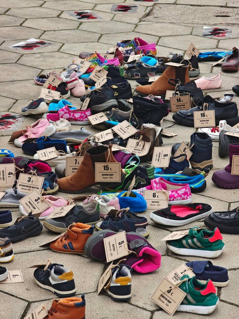 ФЛАШМОБ: Детски обувчици - символ на жертвите в Украйна, под носа на Митрофанова