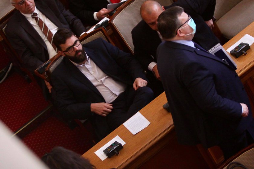 В редиците на ГЕРБ също се забелязват депутати без маски, макар да са малцинство. Сред недисциплинираните е Тома Биков.