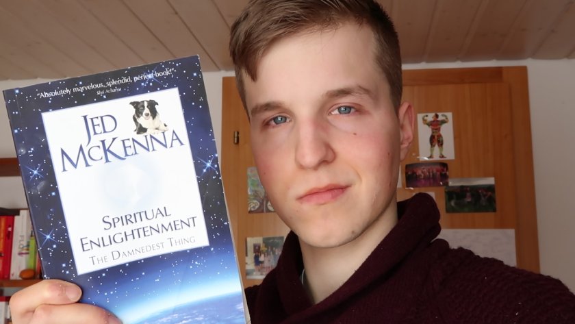 Млад американец позира с една от книгите от трилогията на Джед МакКена, от които явно се е вдъхновил Калушев