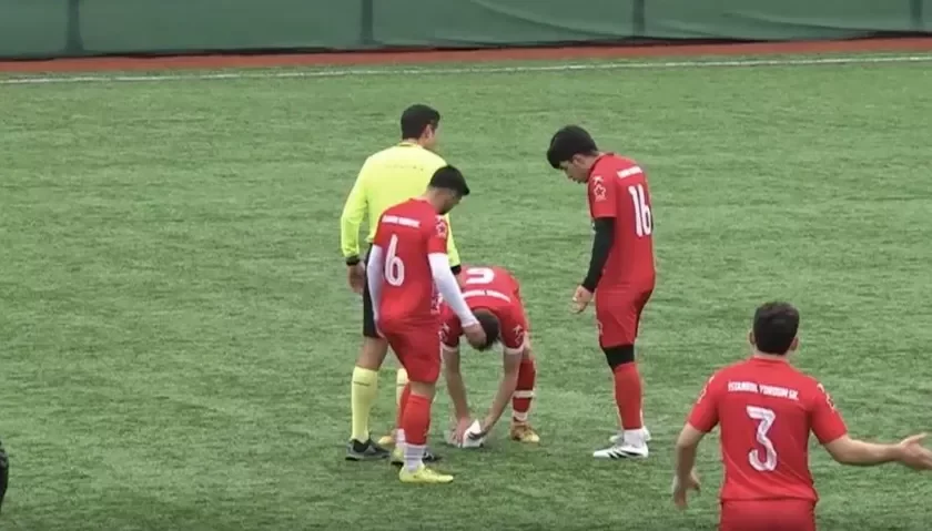 Изключителна сцена се разигра по време на аматьорски мач в Турция между отборите на Мевланакапи Гюзелхисар и Истанбул Юрдум Спор.