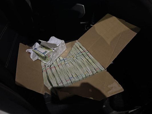 При претърсването на два автомобила и проведените лични обиски са открити голямо количество фалшиви банкноти с номинал 100 евро. До момента е потвърдено, че сумата надхвърля 500 000 евро, пише Кандев.