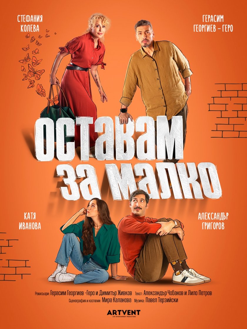 Комедията „Оставам за малко“ среща на сцената Герасим Георгиев, Стефания Колева, Катя Иванова и Александър Григоров