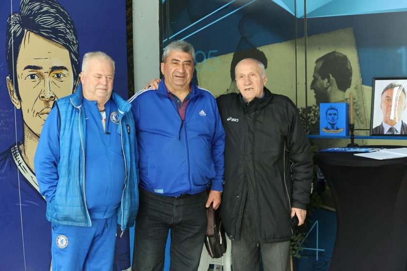 Един от легендарните футболисти на Левски Стефан Аладжов (с черното яке) също отдаде почит към Боби Михайлов