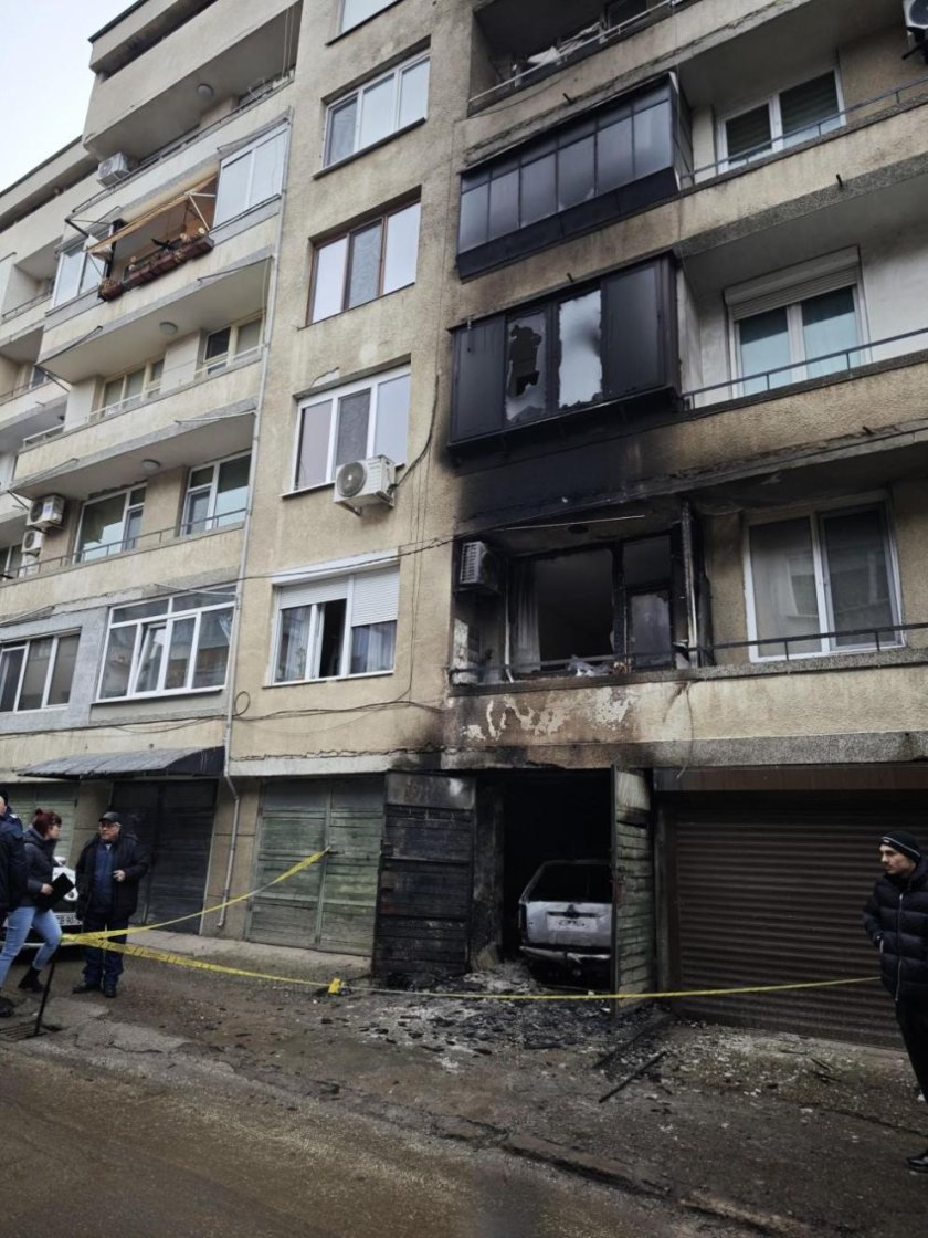 Голям пожар избухна в Плевен. Унищожени са автомобил, два скутера и част от дограмата на апартаментите над него.