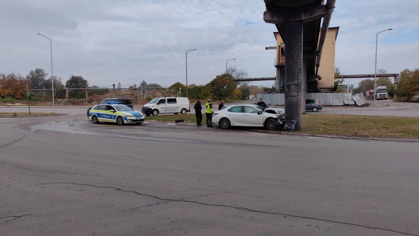 Водачът на лекия автомобил „Тойота" внезапно е изгубил управление и при навлизането в кръговото се е блъснал в колона от топлата връзка над булеварда. На място са били изпратени екипи на полицията и Спешна помощ.