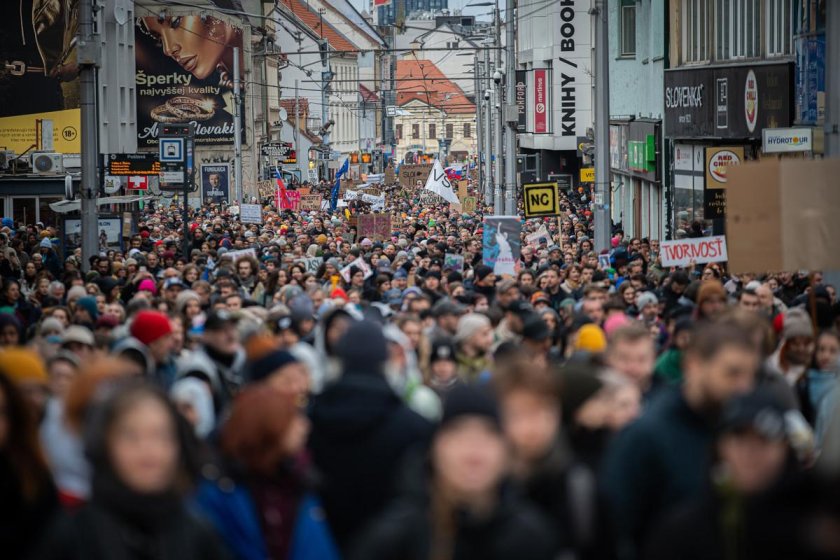 Днешният протест бе организиран от опозиционните партии "Прогресивна Словакия", "Свобода и Солидарност", "Християндемократическо движение" и "Демократи".