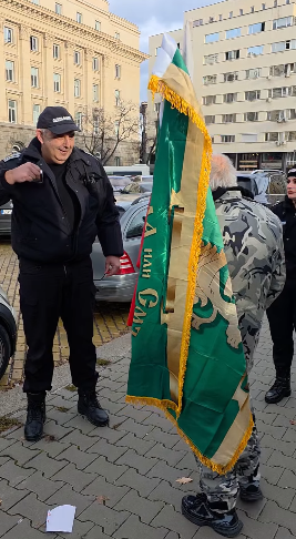 Той показа, че е готов за "битка" с депутатите, тъй като беше облечен в камуфлаж и веещ знамето "Свобода или смърт!".