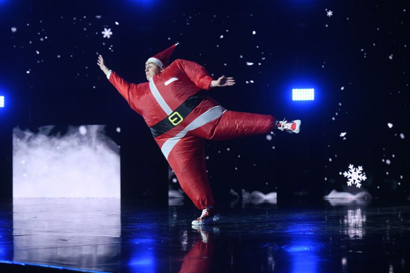 В пълна противоположност с финеса на Арина Шило, актьорът Георги Костадинов излезе на сцената в костюм на дебел Дядо Коледа и изпълни комичен танц на легендарната българска интерпретация „Кен Лий“ по популярната песен на Марая Кери. Георги подари тематични подаръци на журито, с които сякаш се опита да си подсигури симпатията им за финалното гласуване на първия полуфинал.