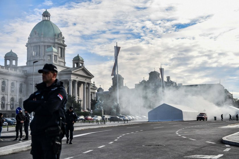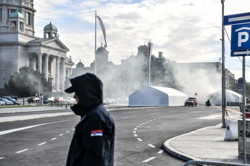 По информация на ТАНЮГ след инцидента е възникнал пожар в една от палатките на площада пред сръбския парламент, като на място са пристигнали четири пожарни коли.