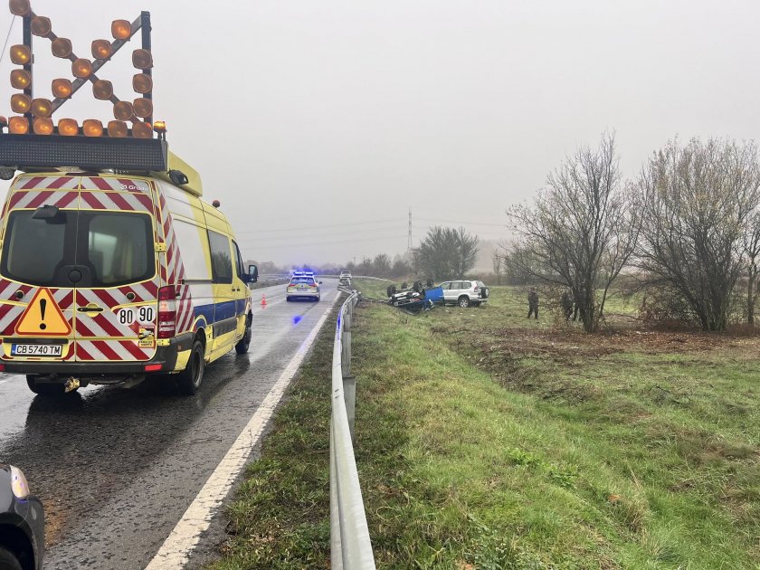 Тежка катастрофа на пътя Казанлък-Стара Загора. Джип излезе от пътя и се обърна. Водачът вероятно е загубил контрол заради висока скорост и мократа пътна настилка. Шофьорът е бил затиснат от автомобила.
