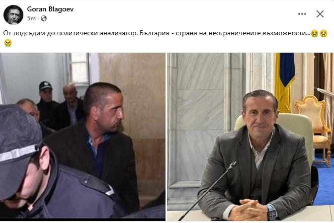 Обратно у нас обаче политическите опоненти на Харизанов не останаха безучастни към новото му поприще. Така, например, Горан Благоев, който бе и кандидат-президент, и водач няколко пъти на листа на Републиканци за България (чийто лидер е бившият втори в ГЕРБ Цв. Цветанов - б.р.), коментира с "повръщащи" емотикони фигурата на Джорджо и с определението: "От подсъдим до политически анализатор".