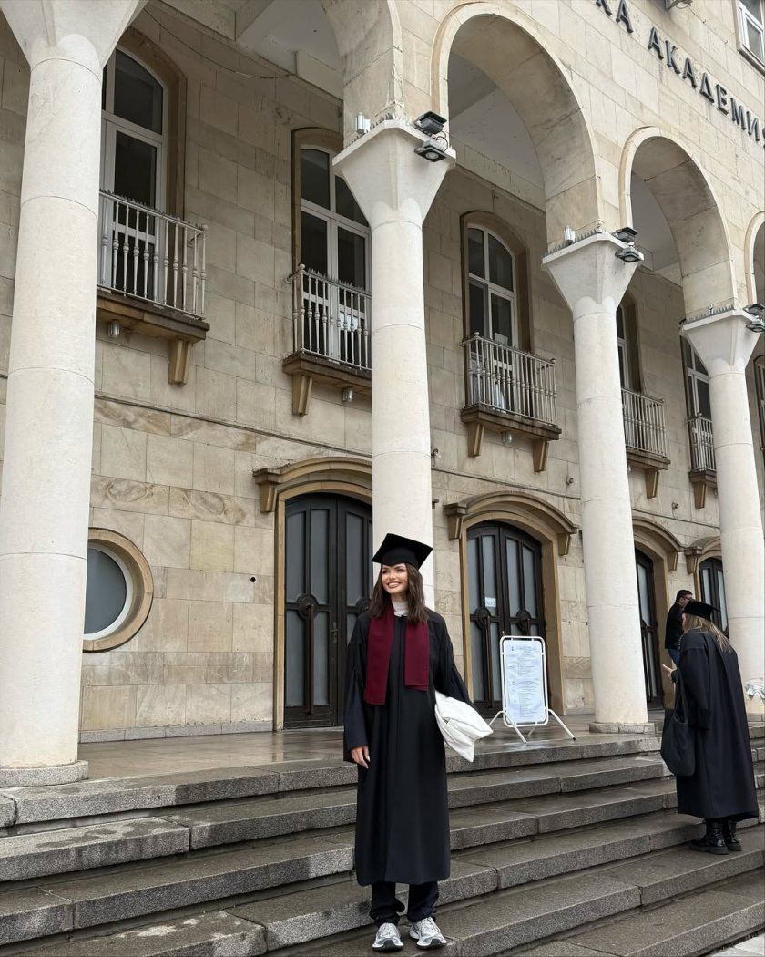 „Още едно сбъдване”, написа манекенката в социалните мрежи, като показа свои снимки с тога и диплома в ръка.