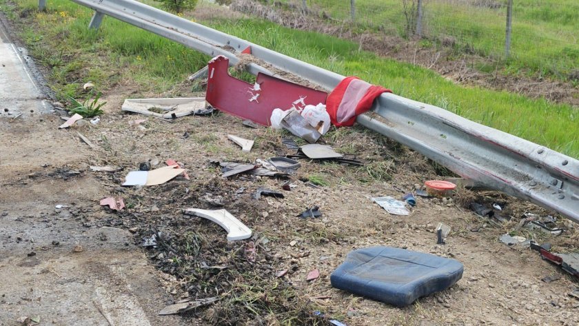 Поради високата скорост машината буквално е помляла мантинелите от двете страни на пътя и се е завъртяла в посока, обратна на движението. На мястото работят екипи на АПИ и "Пътна полиция".