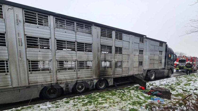 Предстои животните да бъдат прехвърлени в друг товарен автомобил. Движението в участъка не е затворено.