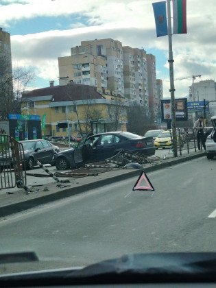 Катастрофа на столичен булевард, автомобил помете пътните заграждения (СНИМКИ)